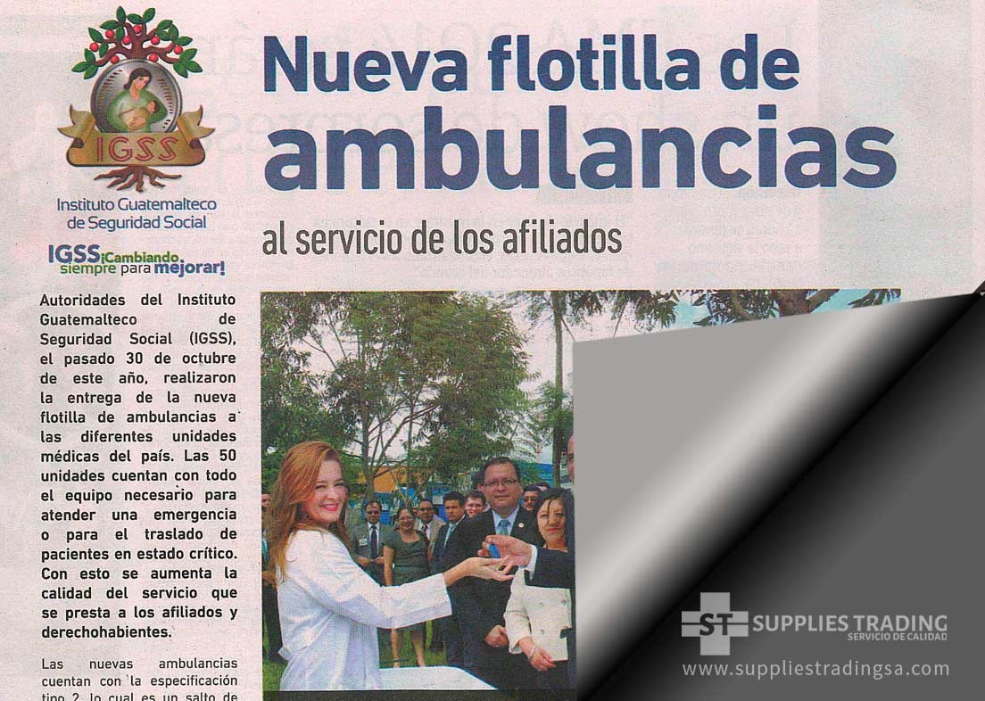 Esta es una reseña de prensa publicada sobre la entrega de la flotilla de ambulancias al Instituto Guatemalteco de Seguridad Social (IGSS) donde nuestra empresa participó como parte de nuestra labor de apoyo empresarial.